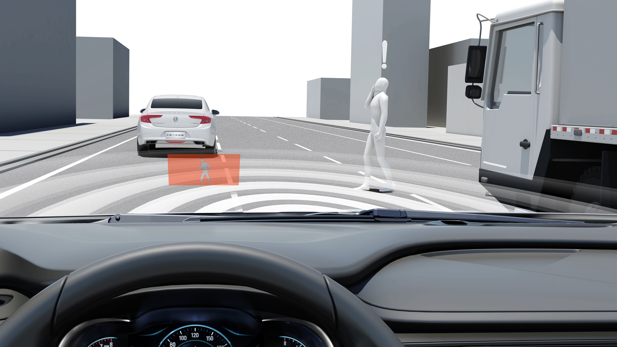 在此基础上,全新一代君越新增PD行人识别、LKA 车道保持系统、FDI 前车距离提示、HBA 远近光灯自动开关控制以及APA 自动泊车等新功能。其中,PD行人识别功能是别克首次引入,能够与HUD平视显示系统和CMB碰撞缓解等功能联动,实时监测周遭环境。当与行人有碰撞的高风险时,系统会给驾驶员以警告。如果驾驶员对报警没有反应,系统会自动刹车以避免碰撞或者减轻碰撞造成的伤害。