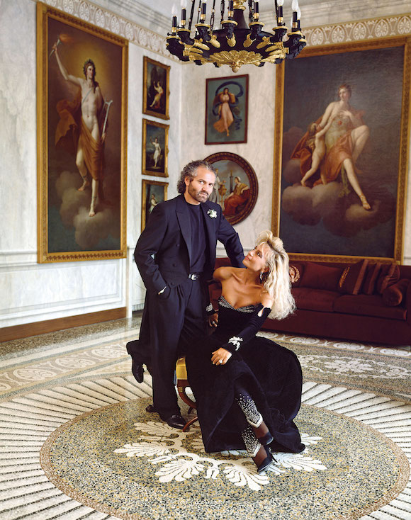 我们正坐在她米兰的办公室里,这里明亮、光鲜,跟Roman Abramovich的游艇有着惊人的相似之处。和用她的家族姓氏命名的时装品牌一样,Versace的生活空间也时常能证明,即便俗气的东西,通过华丽的制作水准也可以化腐朽为神奇。在这个以瞬息万变著称的行业里,她的品牌基本上一直未变初衷。Versace是创伤——一次分手,或一次怀孕——之后重出江湖的神器。它时常会唤起一种基于炫耀的、明目张胆的性吸引:蓬松的头发、金属质感的迷你裙、动物图案的配饰。这些都是一位父亲听到“时尚”这个词时会想到的东西。