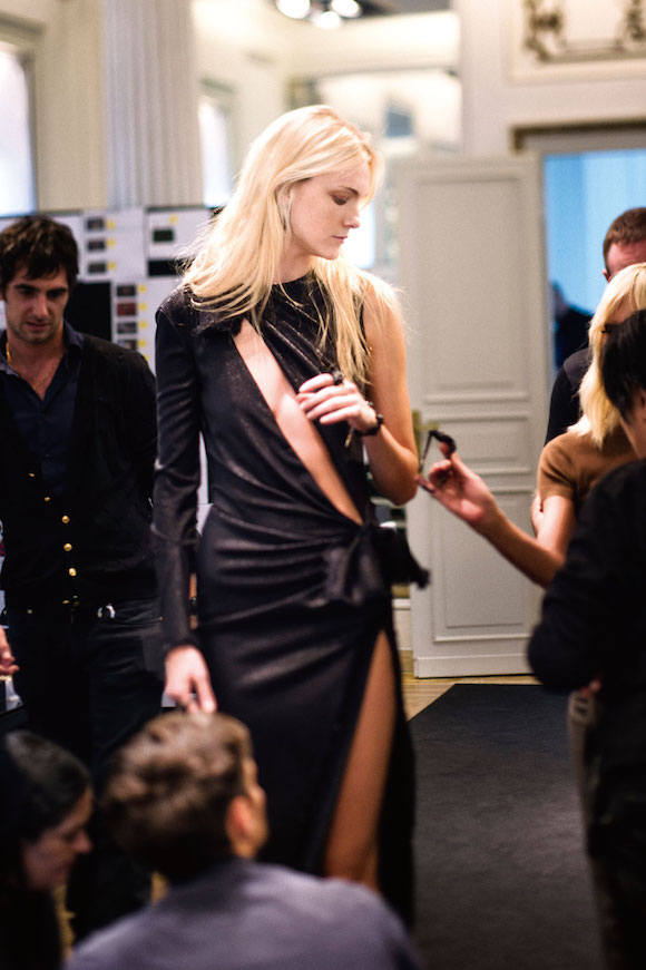 对她来说,无论是新近出现的性感设计潮流,还是自己作品得到的热烈赞誉,都不及模特们的表现更让她激动。“姑娘们又开始相互竞争了!”她几乎是尖叫着说。“真的,你看得出来。上一次看到这样的竞争,都是上世纪90年代的事了!Naomi的时候!那蹬步。”追问之下,Versace承认她的确做了点煽风点火的工作。“我希望她们拿出自己的个性,”她说,“像在街上那样走。在街上你不会这样。”——这时她模仿了一个夸张的摆胯动作——“我不明白你们为什么要走成这样给我看!”