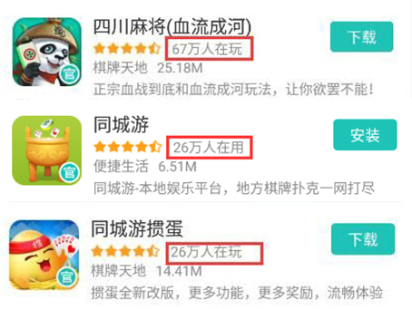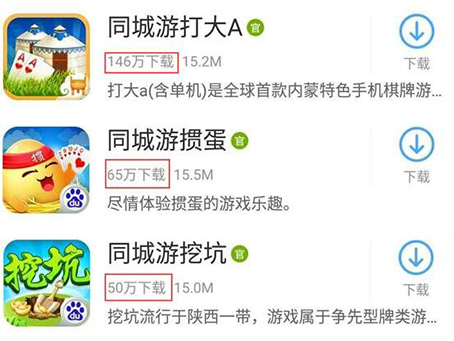 畅唐网络在移动端研发了31款游戏,从上面应用宝、360、百度手游助手等渠道可以看出,畅唐网络手游有非常优质的市场表现,另外 ,由于同城游是棋牌、休闲游戏平台,所以除同城游以外,30款手游都可以在同城游中进行下载,部分手游下载量或还有更好的表现。据官方透露目前畅唐网络旗下同城游已有一亿五千万用户,月活跃用户达到600万。