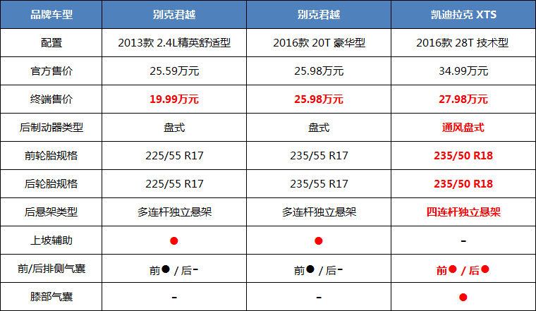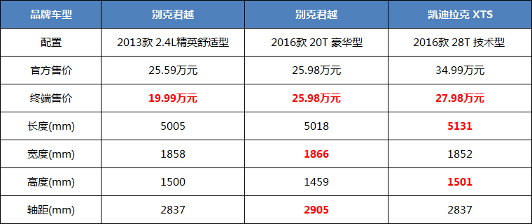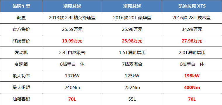 3月18日是黄道吉日,上海通用别克在这一天发布全新中大型轿车2016款君越,售价22.58-33.98万元。其中共有两个排量,六款车型,其中20T车型为1.5T涡轮增压发动机,28T车型为2.0T涡轮增压发动机,这和别克昂科威的命名方式相同。本期话题,我们就来聊一聊26万买辆1.5T的新君越,到底值不值?为此,笔者还找到了两款对比车型,一款是原本定价为25.59万元的2013款2.4L君越精英舒适型,另外一款则是定价34.99万元,终端价格在27.9万元的2016款凯迪拉克XTS 28T技术型。