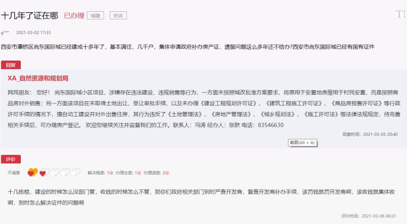 这些维权中,尤其以“没有房产证”的相关问题为最多,也是关系购房者经济利益最重要的一环。在这个过程中,如果开发商五证不全,或当初取得的土地不符合用地规范,而擅自动工建造并售卖的,属于违法行为,其房产证很难办理下来。比如西安市灞桥区山东国际城,虽然建成十余年,已入住几千户居民,但房产证相关问题仍然待解决。