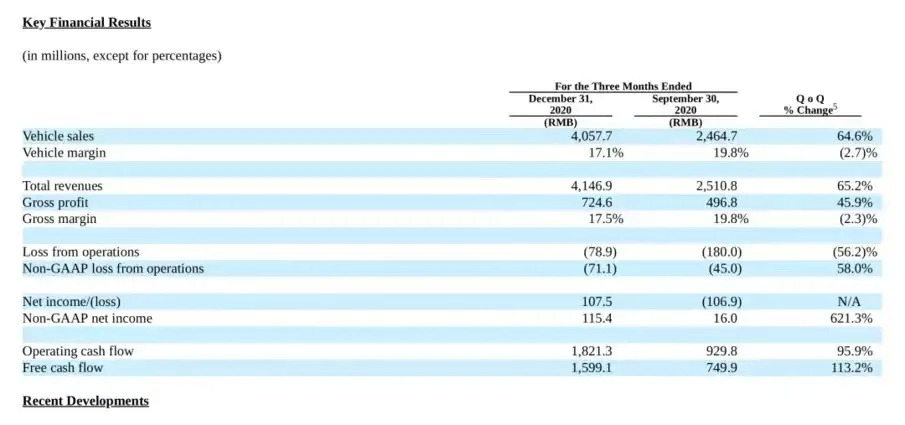 这份财报中,最亮眼的无疑是其实现了上市后首个单一季度的盈利,同时,这也是新造车三势力中率先实现季度性盈利的车企。但理想汽车在2020年度仍处于亏损状态,全年净亏损2320万美元(约合人民币1.517亿元),不过同比下降了93.8%。