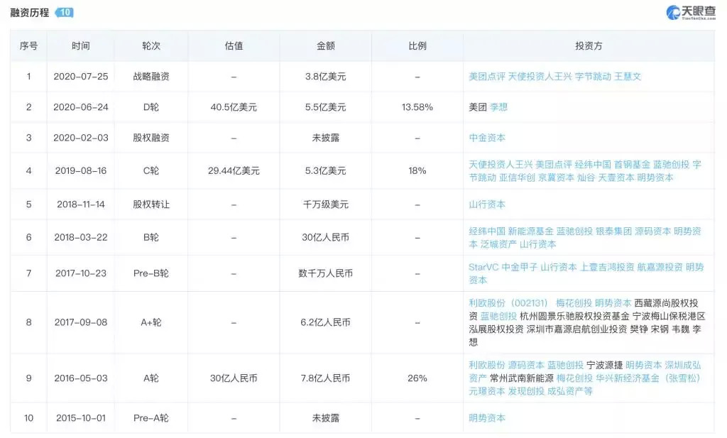根据天眼查数据显示,理想汽车从2015年成立,5年先后融资10次,仅公开披露融资金额就超146亿元人民币,2020年上半年已完成三轮融资,超9.3亿美元(约65亿元人民币)。