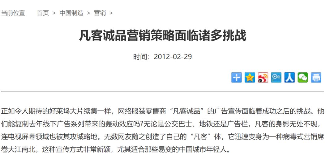 甚至在2011年之后,当凡客再次出现在行业媒体语境里的时候,是以一种“双标”的方式重现的。例如在2014年一篇题为《凡客诚品的死穴》的爆款文章就鲜明地点出“凡客有营销、无产品”——至此,依靠网红模式、社会化营销一度成为行业风向标的凡客,反而成为了带来快时尚“关店潮”的一个负面因素。