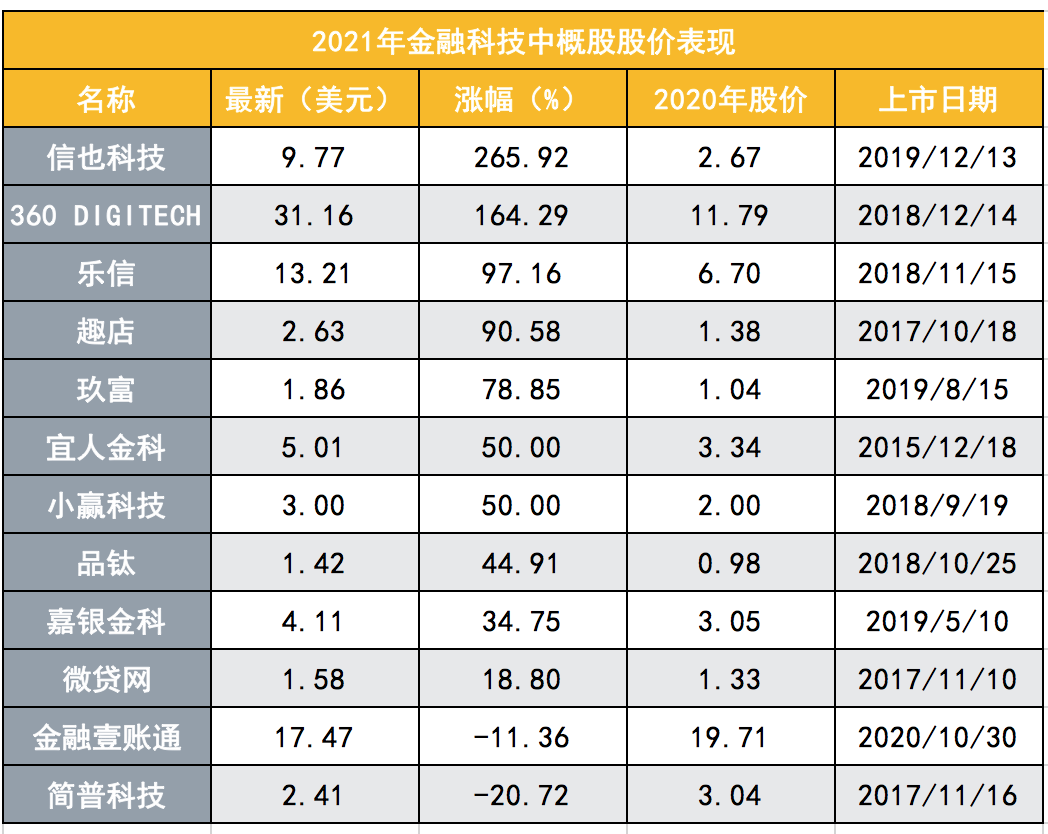 进入2021年,在美上市互金中概股的股价一扫2020年低迷震荡趋势,纷纷创下近两年新高。