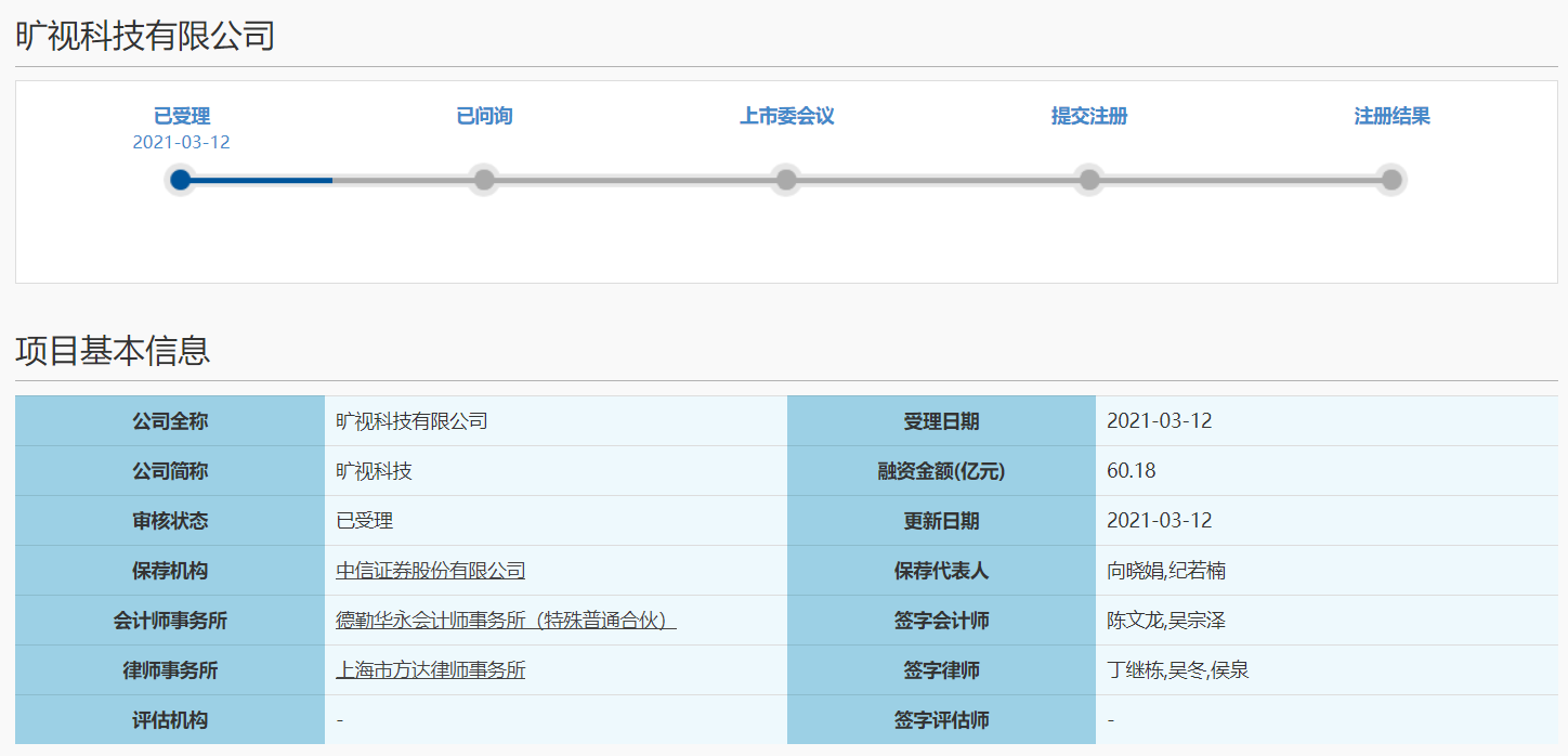 3月12日消息,上交所官网信息显示,旷视科技科创板IPO申请已获受理。