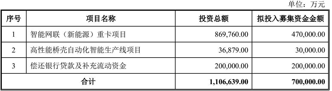 根据定增预案,中国重汽此轮定增募资投资方向分别是:47亿元用于智能网络(新能源)重卡项目,20亿用于偿还银行贷款及补充流动资金,此外3亿元用于高性能桥壳自动化智能生产线项目。