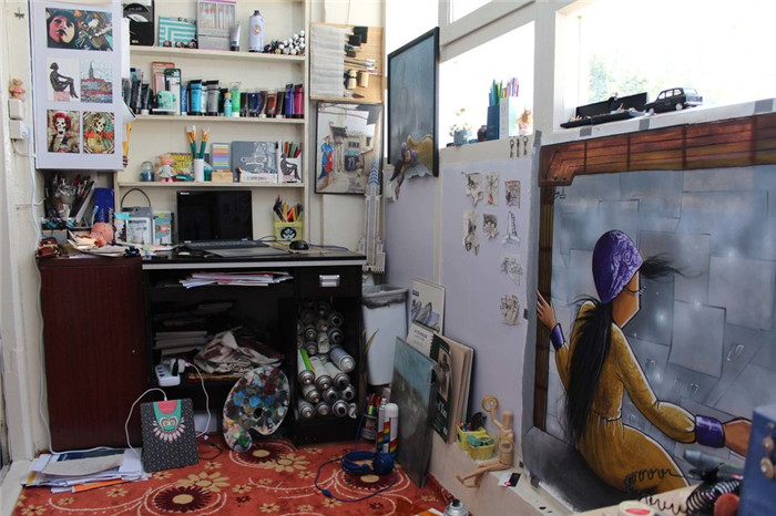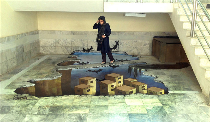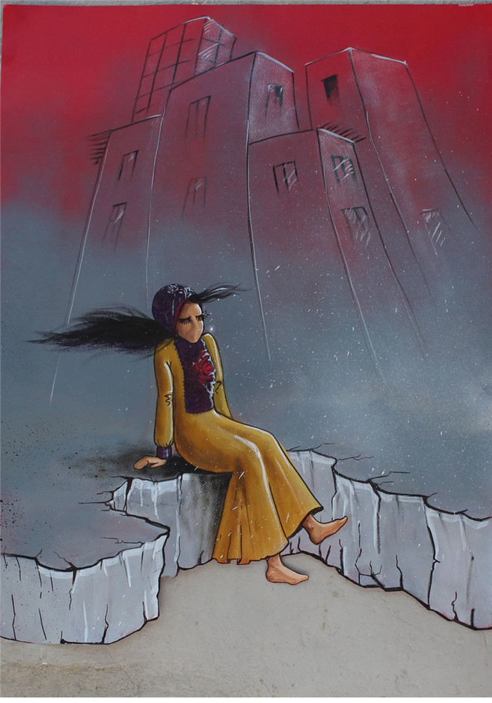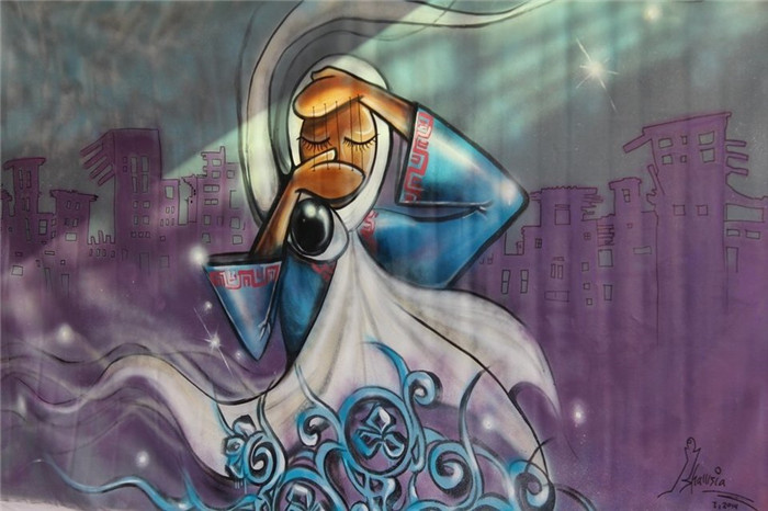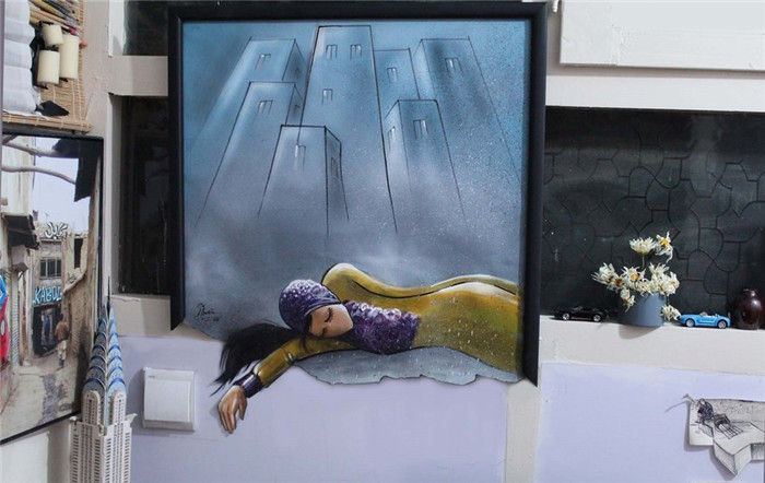 在这里,画廊非常罕见,光秃秃的墙壁却有很多,这样一来,涂鸦就成了向大众传播艺术的一种理想方式。但是,Hassani作为女性,在创作工程中确实遇到了不少困难。大多数人都认为女性就该在家里待着,她不得不与这些丑恶的嘴脸作斗争。由于性别歧视产生的斗争,Hassani创造了“想象涂鸦”,这些涂鸦产生于工作室,而不是街头。运用这种技术,她将数字化的图像当做现实的城市,在这些图像上作画,在脑海中创作多彩的画卷。