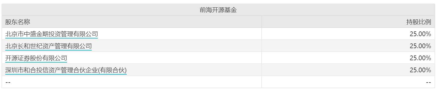 Wind数据显示,目前,前海开源基金有四大股东,各持有公司25%的股权。