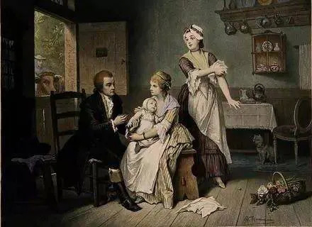 18世纪末,英国医生爱德华·詹纳在工作之余听说农场的挤牛奶女工从来不会得天花。对此,他从一个挤牛奶女工手上取出脓液,接种到一个男孩的胳膊里,接种后男孩胳膊上除了长出了几个小脓疱,并无其他症状。
