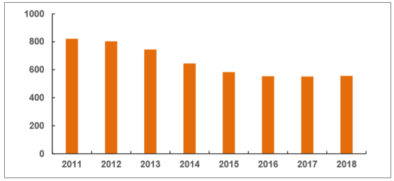 2011-2018年国内疫苗签发数变化图,图源智研咨询公众号