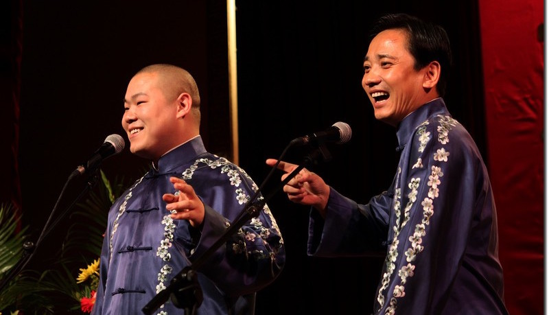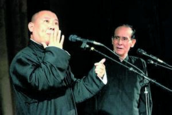 在有1038个座位的北京民族宫大剧院,面对满坑满谷的观众,他和现在的搭档孙越合说了《当行论》《汾河湾》,还和以前的老搭档史爱东演出了《学歌曲》《拴娃娃》。返场时,他向观众连鞠了三次躬,一度止不住泪水。