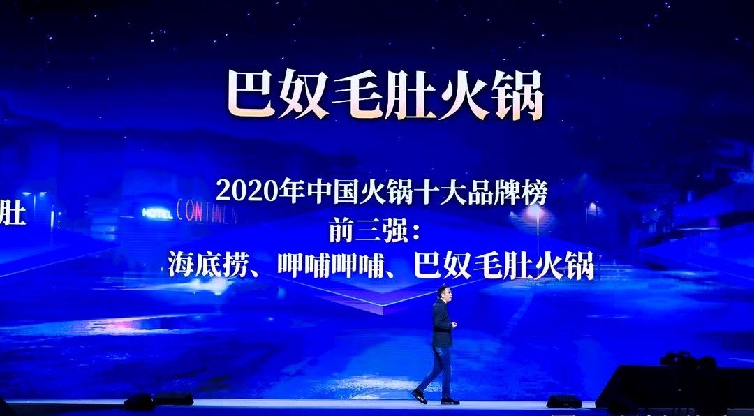 但中国市场之中,火锅赛道依旧“滚烫”。吴晓波在其2020年年终秀演讲中,就以火锅为例展示这个赛道的可能性。他称中国火锅市场的年消费额已经达到了1万亿。此外,2020年火锅行业的前三名的品牌中,第一名是海底捞,第二名是一个台湾火锅,第三名是一个毛肚火锅巴奴。