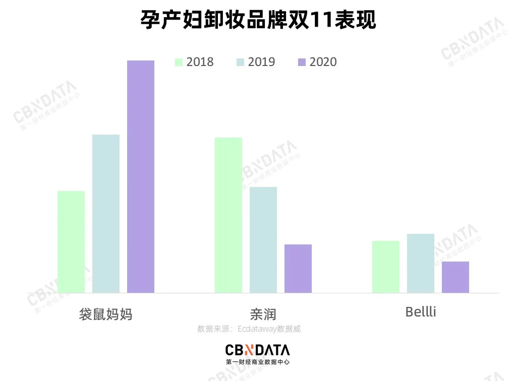 孕妇、男士等小众消费群体美妆需求的发展,也带动了相应的卸妆产品增长。以孕妇专用卸妆产品为例,ECdataway数据威显示,孕期护肤国产品牌袋鼠妈妈在双11天猫销售额连续三年提升,2019年反超日本品牌亲润,占据该细分品类Top1位置,证明该市场具有增长潜力。