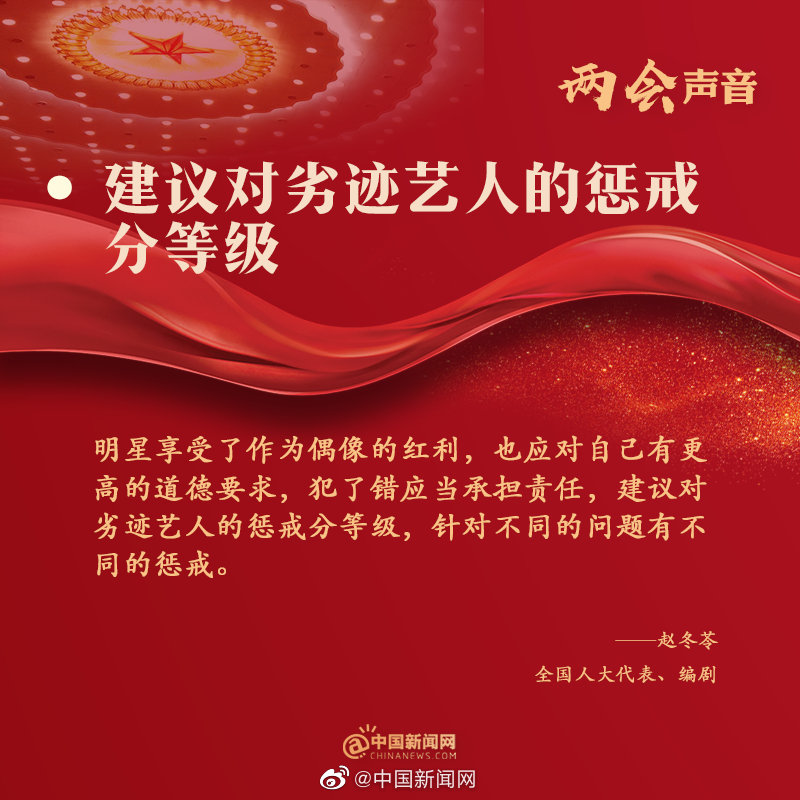 其中,赵冬苓在去年两会的基础上,再次提出了“污点艺人和惩罚机制”的相关内容,认为污点艺人需要遵循明确的惩戒章程来承担后果,但受其牵连的作品及背后资本的风险应在可控范围内。