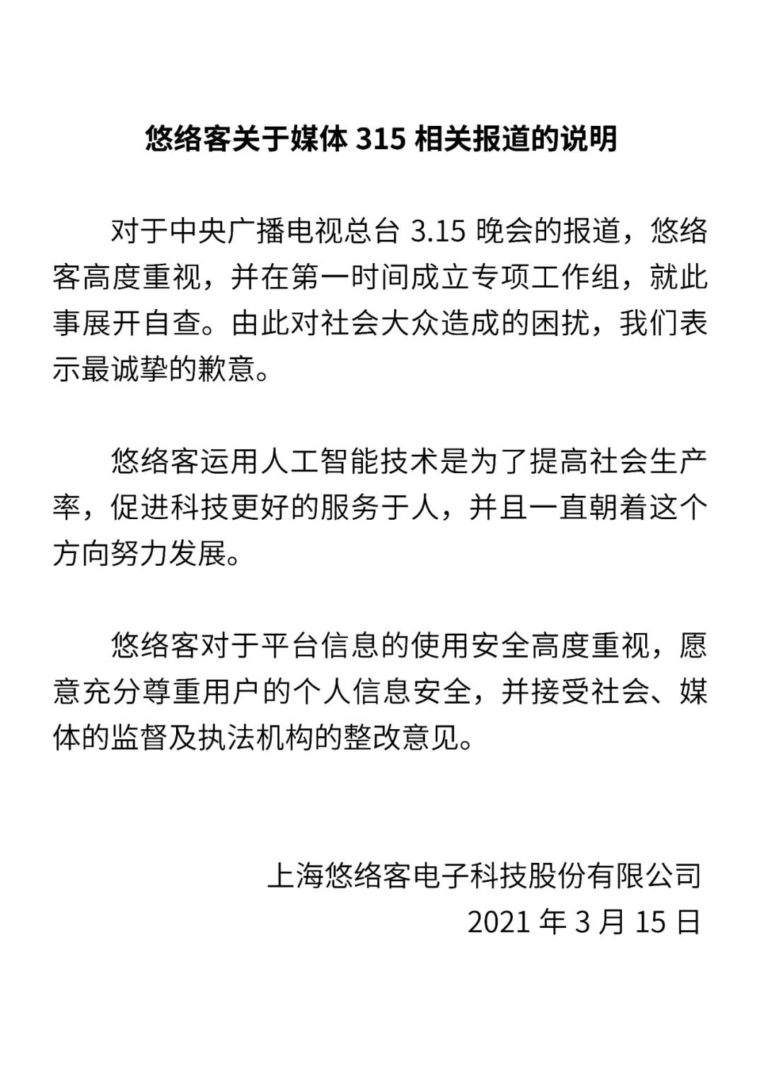 悠络客回应被央视3·15点名:已成立专项工作组,向公众致歉