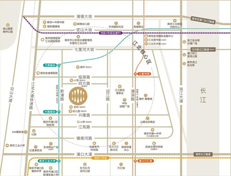 首开万科·江悦光年,位于江北新区新浦路与临滁路交叉口(往南约300米),地处江北核心区、南京自贸区、中央商务区三区叠加之地,毗邻南京工业大学,地理位置优越。