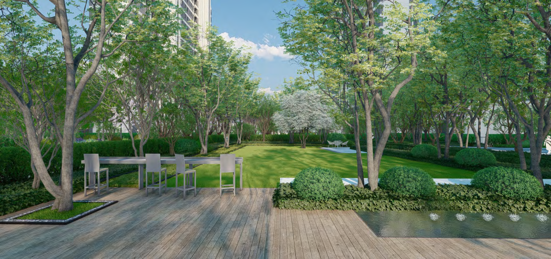 在景观打造上,首开万科·江悦光年采用围合式布局,这样的布局让小区内部形成超大宅间景观花园,超大南北楼间距也保证了各楼栋良好的通风采光条件。