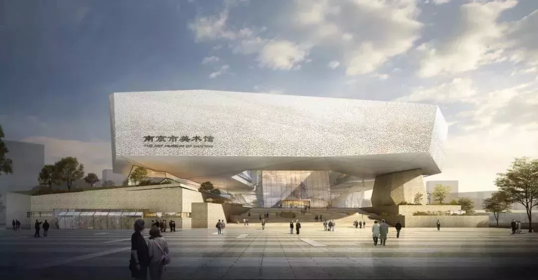 南京美术馆新馆位于新区核心区石佛大道与万寿路交叉口西侧,北侧与青龙绿带相接,占地面积52.8亩,总建筑面积9.7万平方米。