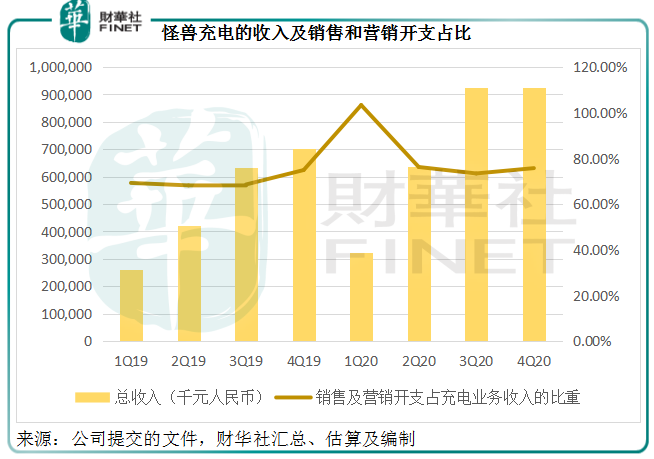 怪兽充电最要命的开支却是一般被企业列为经营开支的销售及营销开支。2020年,这项开支大幅上升55.71%,至21.21亿元,占了总收入的75.5%,相当于移动设备充电业务的78.22%。