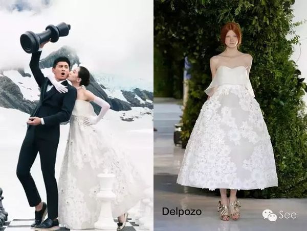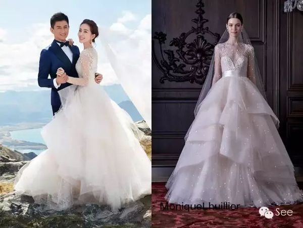 刘诗诗婚纱来自Carven,据说,这套婚纱由20位巴黎工匠历时超过3个月耗费逾 500 小时的制作工时完成。。
