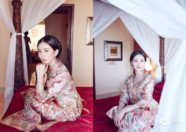 中式礼服来自郭培定制,黄晓明&AB的礼服也是出自他们家。