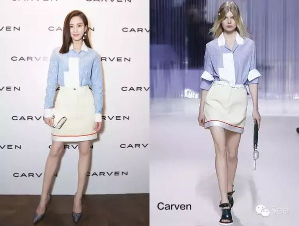 刘诗诗和Carven关系特别好,几次都去Carven大秀,穿得很乖,还像个少女。。