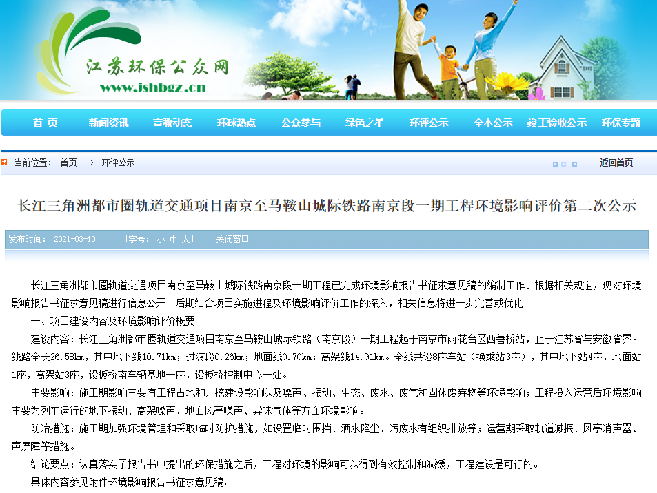 根据江苏环保公众网发布的“长江三角洲都市圈轨道交通项目南京至马鞍山城际铁路南京段一期工程环境影响评价第二次公示”显示,预计到2025年,S2宁马城际一期将正式通车。