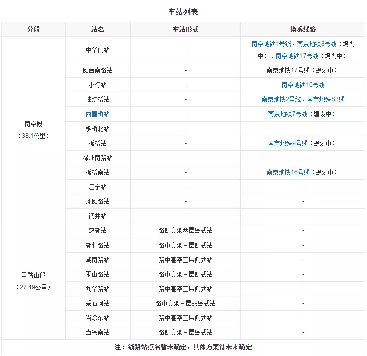 此外,宁马城际南京段最新站点也同时公布了,和前期规划有一些不同,去掉了板桥的绿洲南路站,增设宁桥路站。