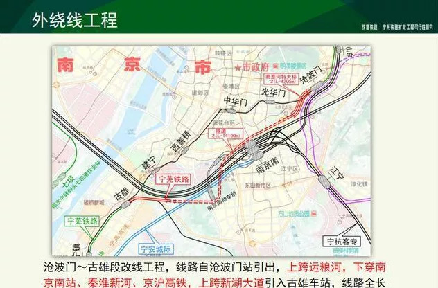 2020年3月31日,南京市与铁路上海局集团举行《宁芜铁路扩能改造(沧波门至古雄段)项目建设框架协议》签约活动,揭开宁芜铁路改线工作的新篇章。