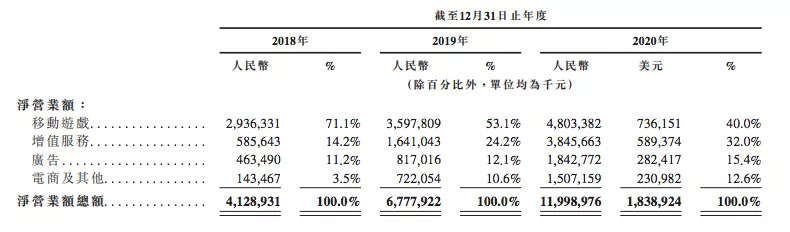 2020年,除了游戏业务,增值服务、广告收入、电子商务及其他业务都实现了同比翻倍增长。