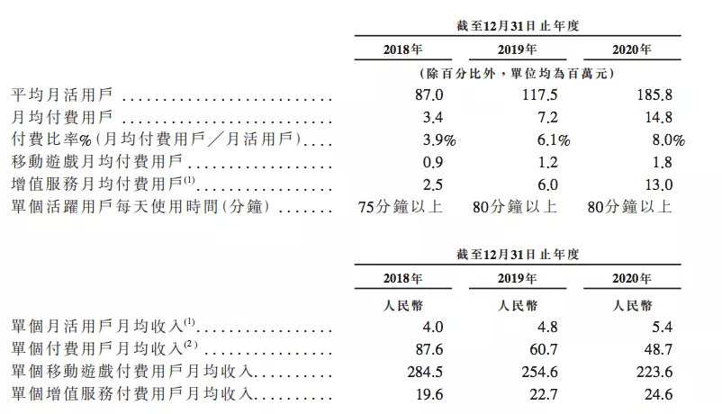 2020年,B站总营收同比增长77%至人民币120亿元,其中第四季度营收同比增长91%至38.4亿元。2020年净亏损为31亿元,上一年度是13亿元。2020年第四季度B站平均MAU 2.02亿,同比增长55%;平均月付费用户1790万,同比增长103%;付费率8.9%,上年同期为6.8%;平均DAU5400万,同比增长42%。
