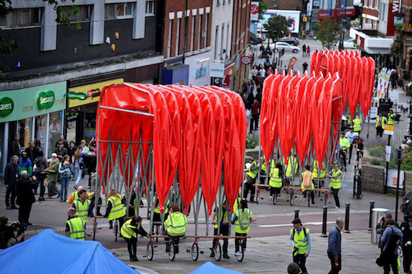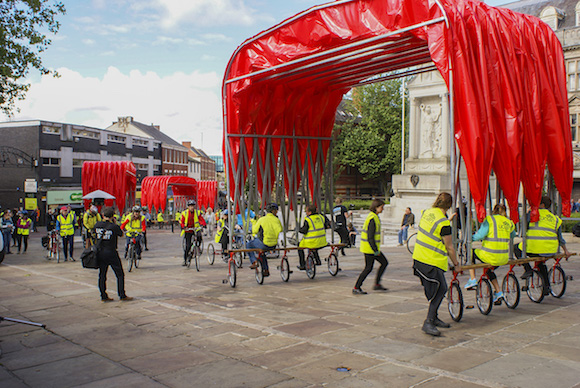 为了让大家多出门玩,众建筑搞了一辆巨型的10人自行车(众行顶),可以排排坐,骑着去兜风。