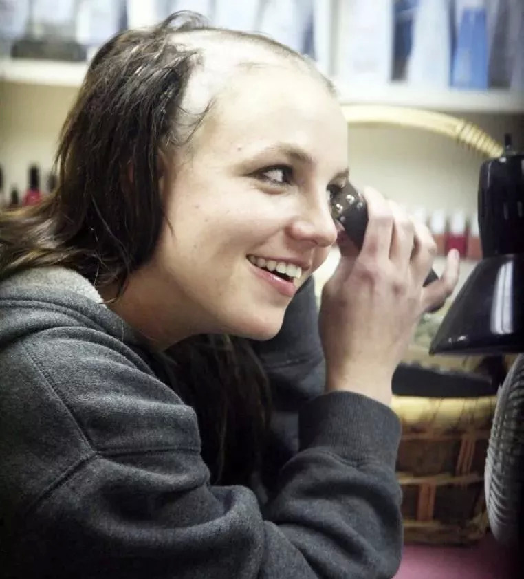 “疯了”的布兰妮则以一种反叛的姿势来对待流言蜚语:她自己剃光了头发。