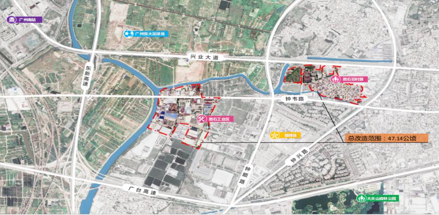 胜石村改造范围总用地面积约47.14公顷,项目总投资金额约60.6亿元,采取全面改造的更新方式,打造集商业、产业、城市观光功能为一体的城市新地标。