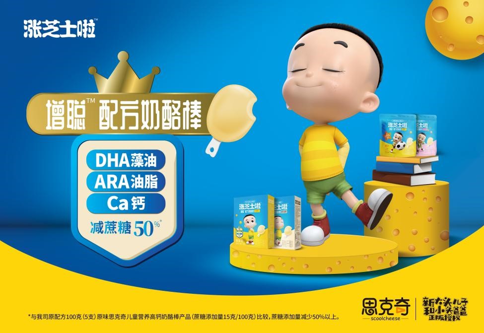 新上市的涨芝士啦奶酪棒,采用全新“增聪”配方,并推出高端盒装系列,满足了高钙高蛋白基础营养的同时,特别添加DHA藻油、ARA油脂,全面助力孩子智力及视神经良好发育。升级上市的思克奇奶酪棒,也在原有配方的基础上进行了改良,采用维生素A、维生素D以及婴幼儿食品可用菌种-Bi-07乳双歧杆菌,不仅有助于骨骼、牙齿生长,更有着增强免疫、平衡肠道菌群等功效。同时,涨芝士啦和思克奇奶酪棒全系列产品减50%蔗糖,让孩子吃得更健康。