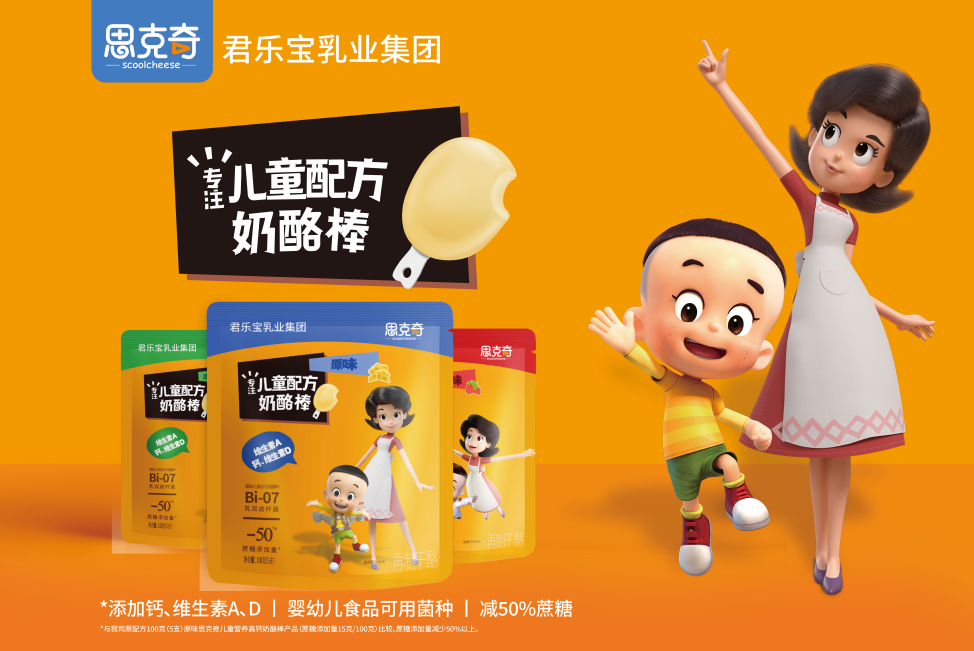 从“喝奶”转向“吃奶”的时代来临。为了让更多儿童享受到奶酪的营养价值,君乐宝推出涨芝士啦配方奶酪棒及思克奇升级版奶酪棒,以品质、营养、健康、专业为出发点,专注儿童营养奶酪,以营养配方为主诉求,打造更适合儿童的、营养更加均衡的配方奶酪棒。同时,为激发中国儿童对奶酪产品的认同感,君乐宝奶酪产品还联手央视动漫集团“新大头儿子和小头爸爸”经典卡通形象,引领儿童零食营养、健康新风尚。