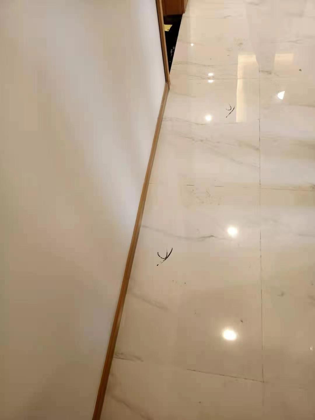 不仅厨房存在大量空鼓问题,验房师在客厅和过道的地面瓷砖也发现了空鼓。