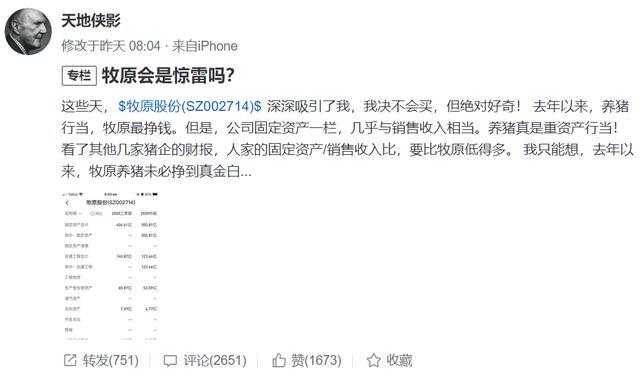 基于“天地侠影”的过往经历,叠加牧原股份本身的关注度,相关质疑在牧原股份乃至整个雪球论坛引发了一场惊雷,网友们迅速表现出支持和反对两种态度,支持的人跟着骂牧原股份,反对的人则提供了各种分析予以辩驳。