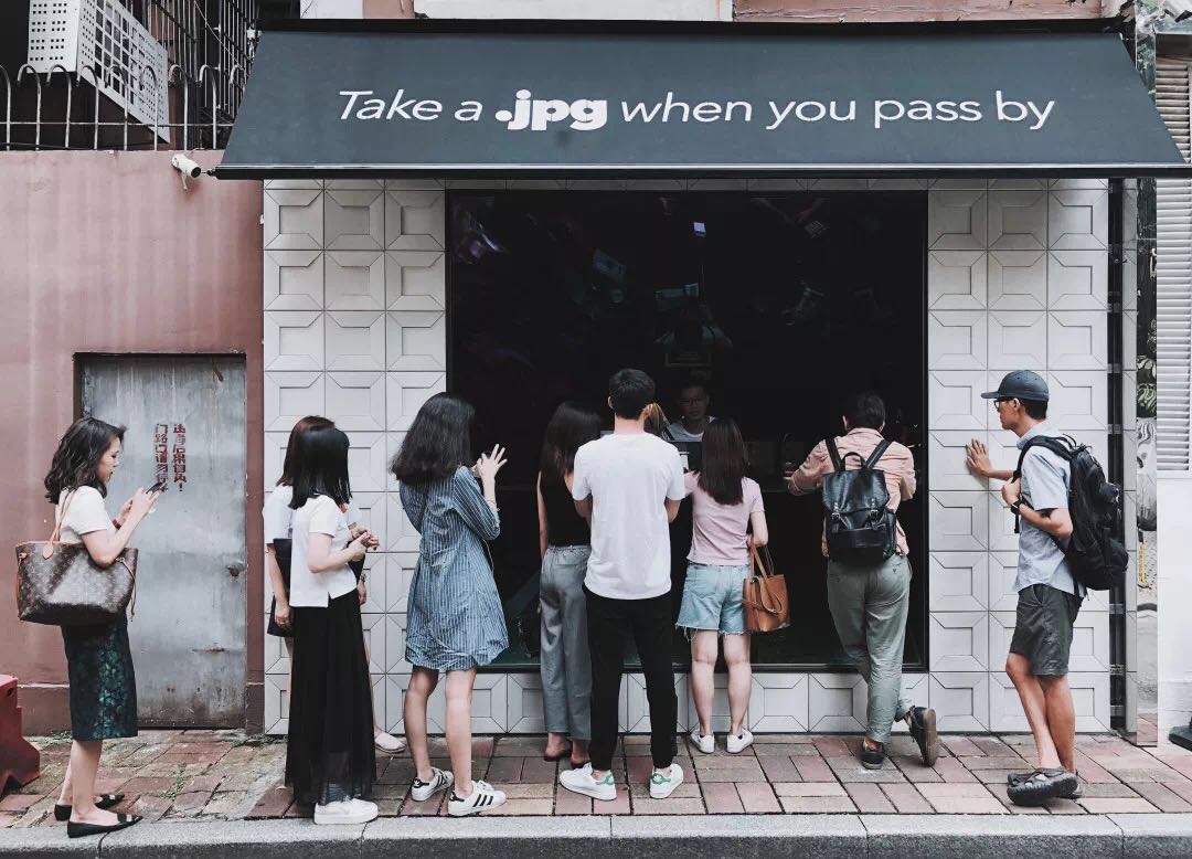 窗口式点单,没有落脚聊天的地方,只售卖美式、拿铁、小白三种咖啡,价格18元到23元不等。尽管如此,这家名为.jpg的咖啡店,还是吸引了不少年轻白领,下午两三点左右经常会排起队伍。