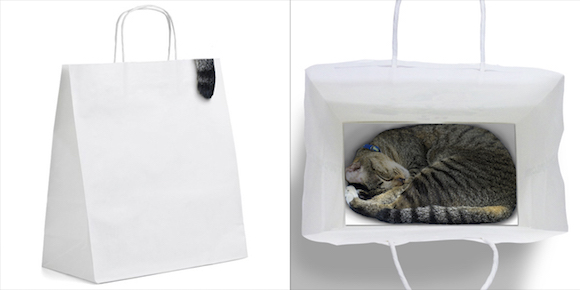 等你下次捕捉到它的身影,发现它竟然就藏身门背后的那个纸袋里,还得意忘形,没记得把尾巴藏起来。