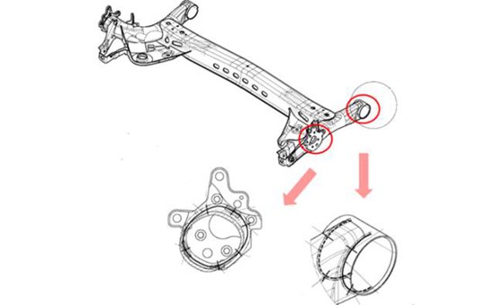 扭转梁后桥由于只有一个橡胶衬套,要兼顾纵向刚度软,横向刚度硬两个截然不同的设计要求,很难面面俱到。往往一方面优化了纵向刚度,另一方面横向刚度就偏离了设计目标,最终只能选取一个折中方案。多连杆后桥的橡胶衬套数量在六七个以上,分别控制整车横向和纵向的刚度特性。底盘开发工程师可以针对不同的衬套调整某一方向的刚度,实现行驶动力学最优的设计目标。