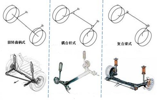 在载荷较轻的A0和A级轿车上采用耦合杆式和复合梁式后悬。如果结构设计合理、衬套刚度及布置位置调校得当,完全可以满足普通客户对乘坐舒适性和驾驶安全性的要求。