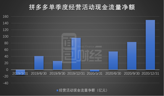 依托完备的生态体系,拼多多的经营性现金流维持稳健增长。