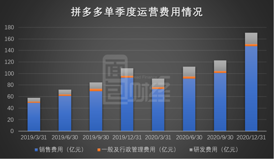 财务数据显示,2020年,拼多多的总运营费用为495.94亿元人民币(约76.01亿美元),相较2019年的323.41亿元增加了53.35%。