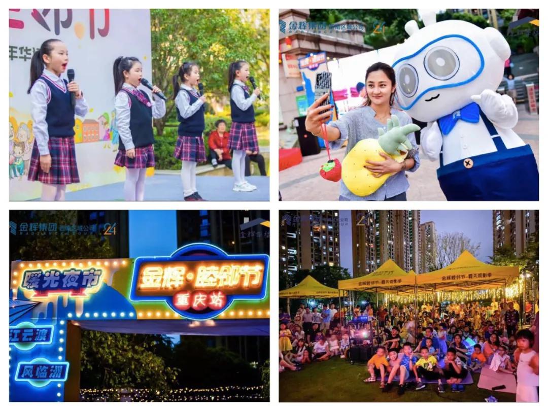 在金辉,“睦邻节”已成为业主期待的年度社区体验。通过“业主晚会”、“亲子嘉年华”、“暖光夜市”等系列活动,为业主提供全龄社区互动,进一步增进邻里感情,让业主充分享受暖心的社区生活。考虑到疫情对健康观影和地摊经济的需求,在2020年的社区活动中新增了“星空电影节”,并升级“暖光夜市”,受到各地业主的一致好评。