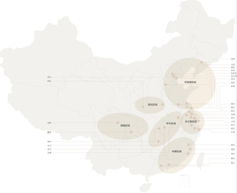 金辉集团近些年的稳健发展,主要得益于审慎的土地策略及前瞻性布局。秉持发展战略,重点关注人口基数庞大,人口持续流入且供求关系合理的二线及核心三线城市,把握机遇扩大版图,完成了华南、西南、西北、华中、长三角、环渤海6大区域的战略布局。