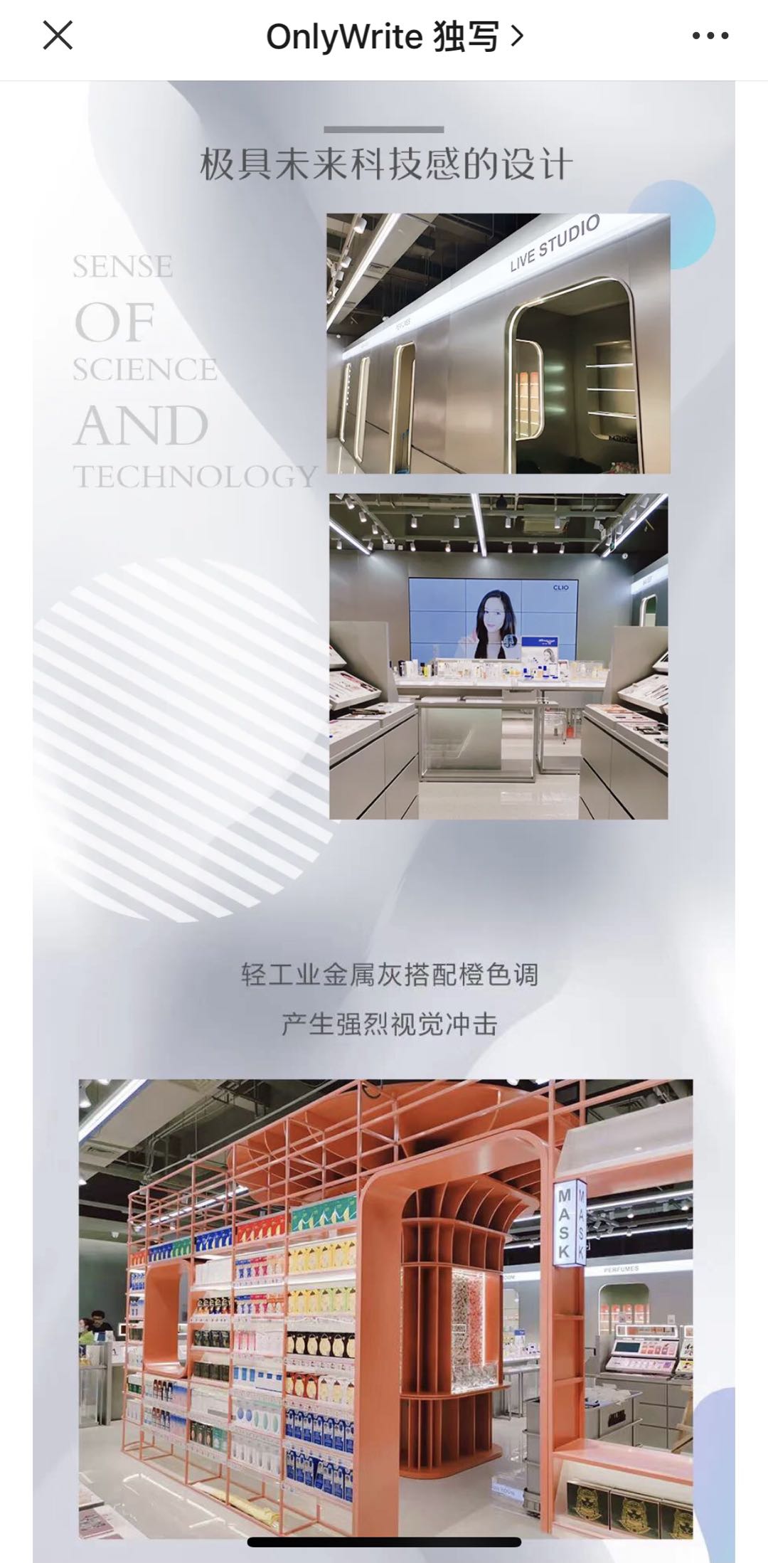 由此可见,“独写”将延续周建雷在美妆零售上的经验。但通过浏览小红书用户分享的店内陈列可以看出,“独写”比“橙小橙”更贴近于新一代美妆集合店打造“网红店”的势头。