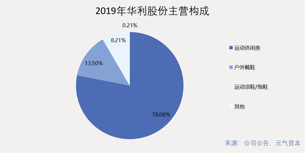 分产品来看,华利的产品结构包括运动休闲鞋(运动类、休闲类)、户外靴鞋、运动凉鞋/拖鞋及其他,各类产品的占比分别为78.08%、13.5%、8.21%、0.21%。